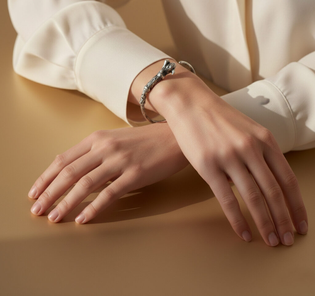 «La magia requiere tiempo. Este brazalete se modela y funde bajo pedido, asegurando que cada pieza reciba el cuidado y la dedicación que tu historia merece.»