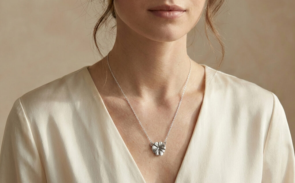 Tu colgante de trébol está realizado en Plata de Ley 925 con un acabado artesanal. Para que mantenga su belleza y ese contraste único de texturas durante años, te recomendamos:
