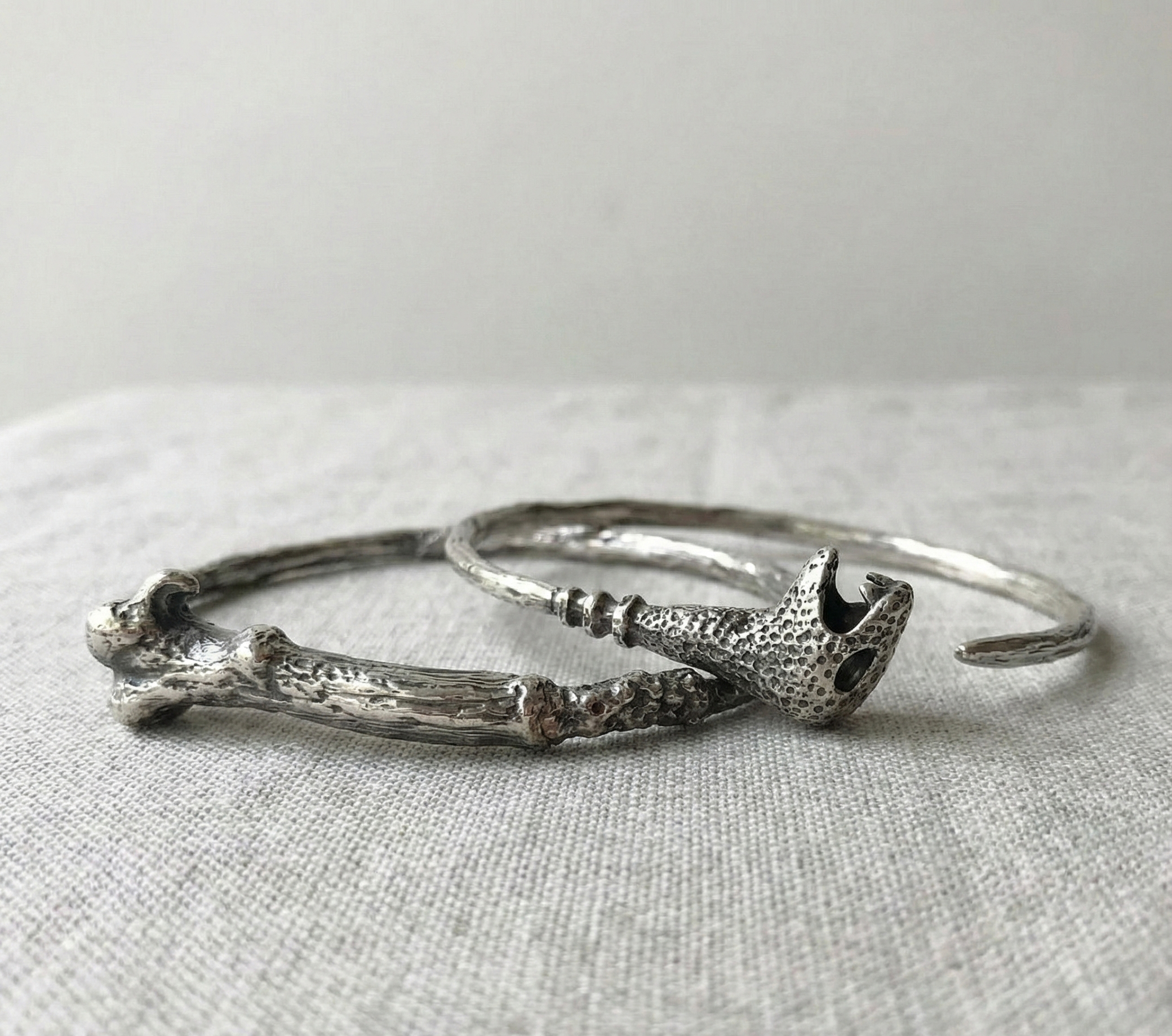 Descubre una colección de joyería escultórica donde el metal cobra vida a través de texturas orgánicas y formas místicas. Cada pieza es un relato visual que fusiona la fuerza del bronce con la delicadeza del detalle hecho a mano. Déjate cautivar por objetos únicos diseñados para trascender la ornamentación y convertirse en arte portable.